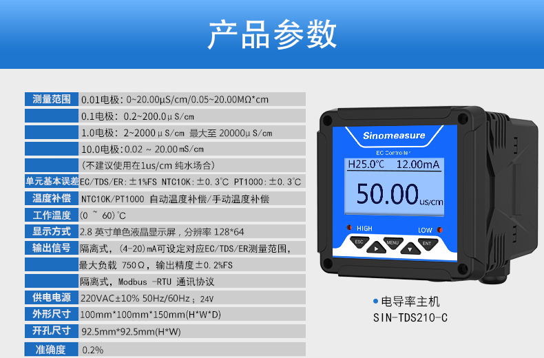 簡(jiǎn)要描述:SIN-TDS210-C工業(yè)電導(dǎo)率儀表,廣泛應(yīng)用于火電、化工化肥、冶金、環(huán)保、制藥、生 化、食品和自來(lái)水等行業(yè)??刂破髦饕獙?duì)溶液中的電導(dǎo)率/總?cè)芙夤腆w/ 電阻率和溫度進(jìn)行連續(xù)監(jiān)測(cè)。