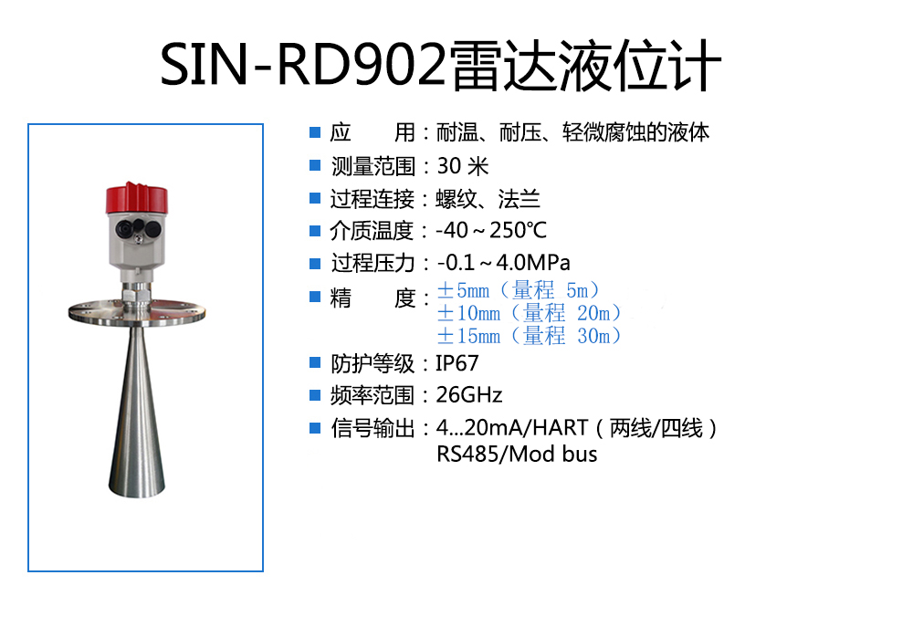 當前位置:首頁 > 雷達液位計 > 聯(lián)測_SIN-RD902雷達液位計_適用于高溫高壓的液體_